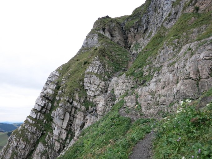 Am Lisengrat bestand auch die Gefahr, von Nassschnee der sich von den steilen Wänden oberhalb der Bänder löste, getroffen zu werden! Wasser kam ständig runter; ein Zeichen dass die Temperaturen über dem Gefrierpunkt lagen.