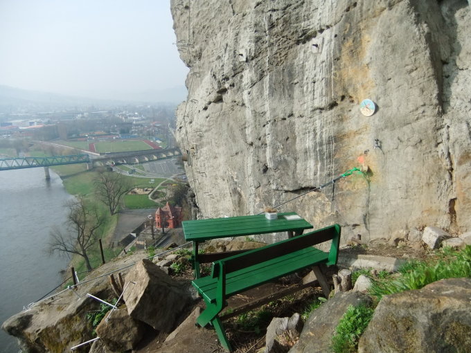Im linken Wandbereich sind derzeitig 2 weitere Routen vom fleißigen VF-Enthusiasten Karel Bělina neu eingerichtet worden mit Unterstützung des Outdoorhändlers Hudy und der Stadt, jedoch noch ohne Bezeichnung (Stand 11.4.2015). Srdečné díky Karel !