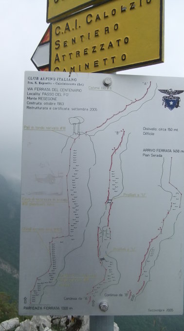 Ungewöhnlich ist die Vielzahl der Eisenbügel gegenüber anderen Klettersteigen der Lombardei. Die Route erinnert eher an einen französischen Sportsteig. Daher problemlos hinabkletterbar
