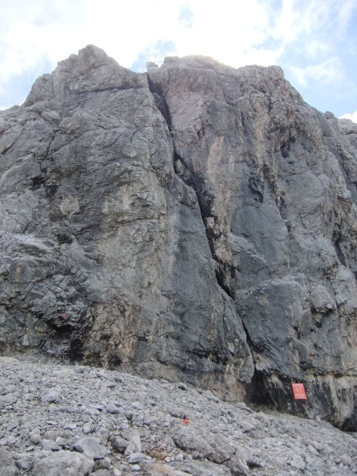 Anschlußtour nach dem Klettersteig zum Vorderen Taja-Kopf. Einstieg oberhalb des Vorderen Taja-Törls um 11:00 Uhr. Die beiden Vorgänger im Klettersteig über die Taja-Kante vor mir nutzten diesen Abstecher ebenfalls.