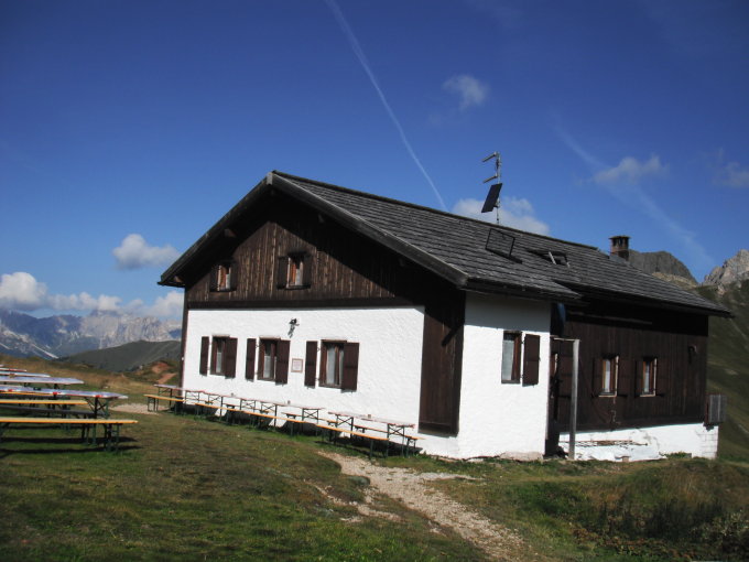Dieses Jahr ist 100. Jahrestag der Kriegserklärung von Seiten Italiens an Österreich-Ungarn. Damalige Grenze verlief durch die Dolomiten und das Val San Nicoló. Auf dem Teersträßchen stehen an linker Seite bis hinauf nach Ciamp großformatige Kopien von Aquarellen ehemaliger Kriegsmaler, welche damals die Soldaten begleiteten.