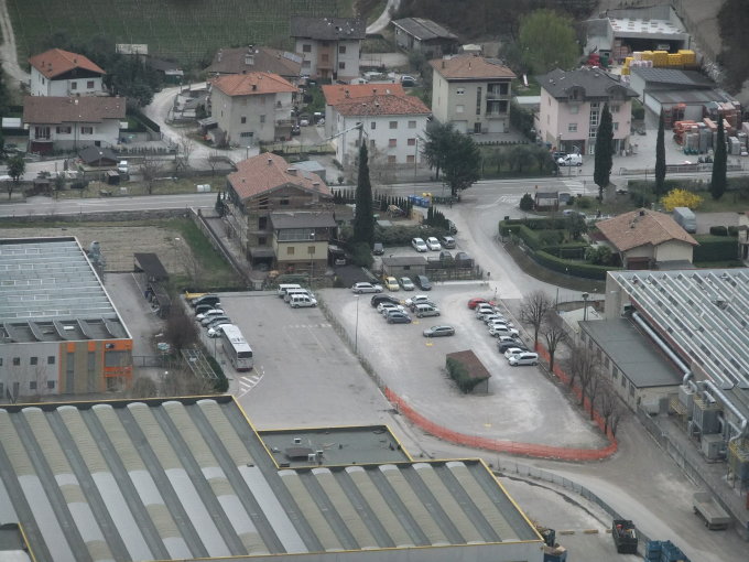 Von Norden über die Brennerautobahn A 22 bis Abfahrt Trento-Nord, bzw. von Süden (Verona) auf der A 22 bis Abfahrt Trento-Süd. Durch den Ort westwärts auf der SS 45b westlich am Lago di Toblino vorbei bis Sarche. Dort beim Rechtsabzweig der SS 237 weiter südwärts auf der SS 45 bis Richtung Pietramurata. Nach der Brücke über die Sarca (Ponte del Gobbo) biegt man beim ersten Kreisverkehr direkt am Ortseingang von Pietramurata von der Viale Daino rechts ab in das kleine Gewerbegebiet mit dem Kies- und Steinwerk Eurotex. Dort befindet sich ein kleiner Parkplatz, der auch von dortigen Werktätigen z.T. genutzt wird (254 m). Sollte dieser schon belegt sein, zweigt man unmittelbar nach der Ponte del Gobbo nach rechts in eine Schotterstraße ab zu ehemaligem Steinbruch (Maso Gobbo). Dort campieren oft die MSL-Kletterer. Wer beabsichtigt, für den Abstieg die Nordroute (Wanderweg Nr. 427) nach Sarche zu benutzen, für den bietet sich eher ein Parkplatz an anderer Stelle an, um den Gesamtweg auf Abstiegsseite um ca. 40 min. zu verkürzen. Dafür wird der Zustieg allerdings länger. Und zwar fährt man dann in Sarche nicht geradeaus südwärts weiter, sondern biegt rechts ab auf die SS 237 Richtung Tione di Trento. Nach der 5. Kehre gelangt man zu einem großen Parkplatz mit Grillstelle und Tisch-Bank-Garnituren an rechter (westlicher) Straßenseite bevor nach nächster Rechtskehre die Straße im Tunnel verschwindet. Über diesen führt der Wanderweg Nr. 427 zu jenem Parkplatz, so daß man im Abstieg direkt dort vorbei kommt (325 m).