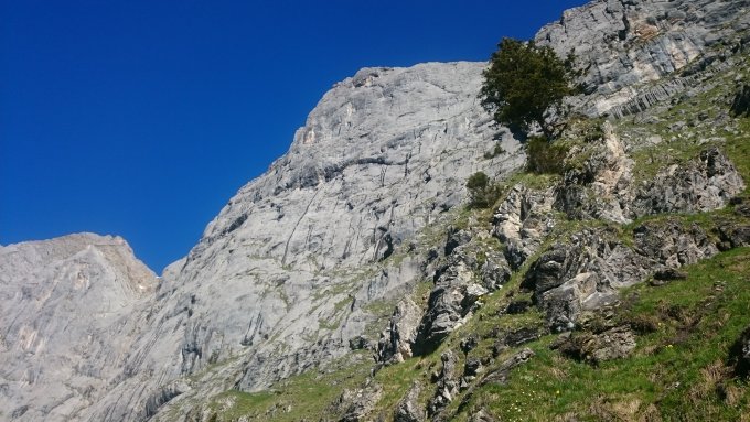 Frühmorgens beim ersten Blick aus dem Tal auch am Signal noch einige Wasserstreifen, vor Ort nach dem Zustieg waren diese in der Tronco bereits komplett abgetrocknet. Die anderen Routen (v.a. Optimist, Wurzelbrut und die Einstiegslänge von Sternwächter) brauchten noch etwas länger, sind aber inzwischen sicher auch machbar. Zustieg komplett schneefrei und in guten Bedingungen, teilweise etwas verkrautet mit nicht überall sichtbarer Wegspur.