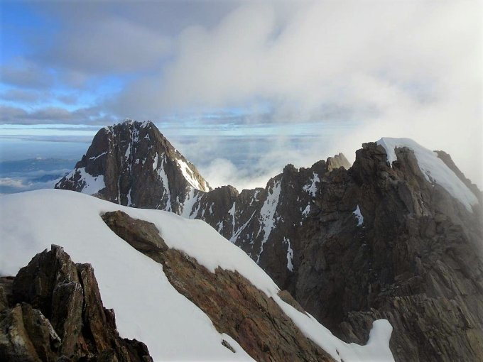 Start um 2 Uhr ab Aarbiwak / Ankunft Gipfel 7 Uhr / kurz etwas Nebel und unangenehmer, kalter Wind. Abstieg vor 7.30 und zurück zum Biwak.