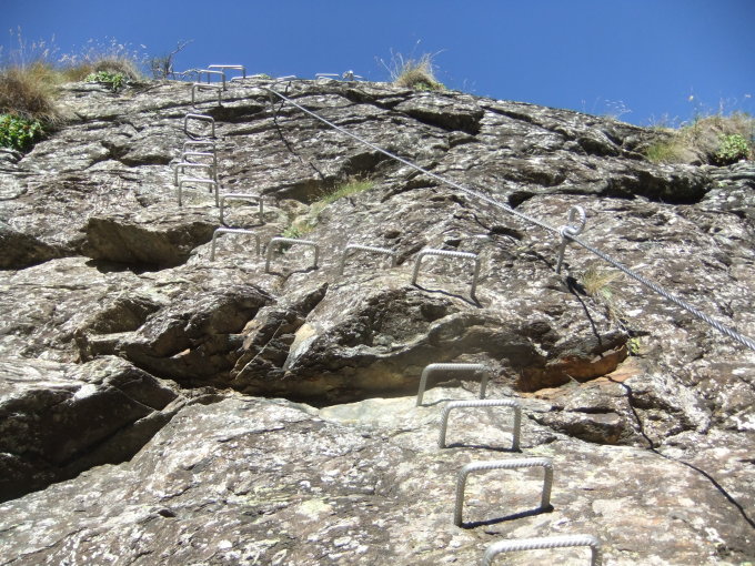 Der Steig (mit der schweren Variante) gehört wohl zu den schwersten Italiens. Er befindet sich bereits morgens in der Sonne.