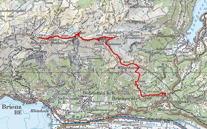 Mit öV auf den Brünigpass - Wilervorsess - Wilerhorn (2'004 m) - Scheidegg - Berggasthaus Schönbüel (Gelungene Renovation / auffallend freundliche Bewirtung) - Höch Gumme (2'205 m) - Zwischenegg - Arnihaaggen (2'216 m) - Eiseesattel - Brienzerrothorn (2'348 m) - kurzer Abstieg zum Berghotel Brienzer Rothorn.