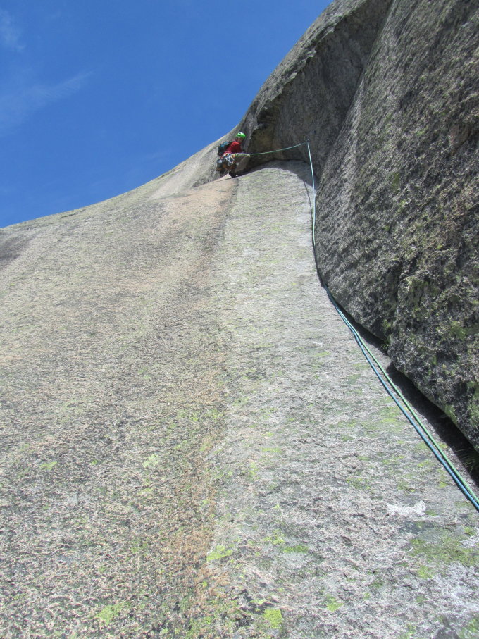 An sämtlichen Stellen wo die Plättli entfernt wurden, lassen sich die Risse wunderbar selbstabsichern und die Kletterei ist dadurch durchaus intressant. Trotzdem verstehe ich dieses WildWest-Verhalten einiger Klettergenossen nicht. Zu was führt dass, wenn die Erstbegeher eine Route ausrüsten und irgendwelche Anonymen räumen sie kurze Zeit später wieder aus??