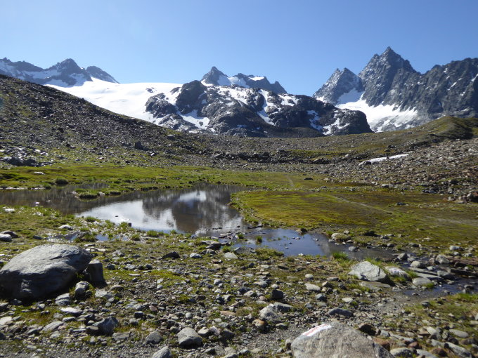 Normalroute von der Silvrettahütte Die Tour benötigt aufgrund der Gletscherrückgänge deutlich mehr Zeit als in der Führerliteratur angegeben wird.