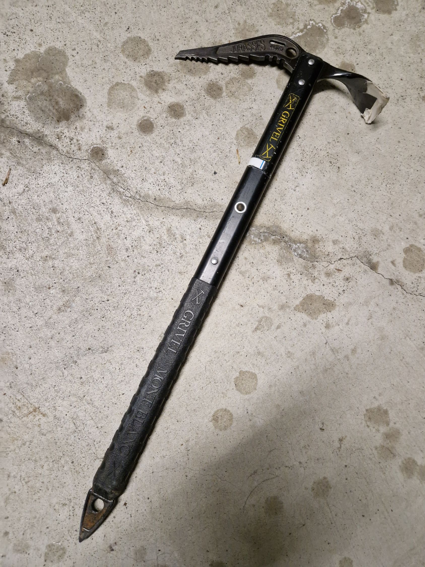 Schwarzer Grivel Mont Blanc Pickel oberhalb von Weglosen (ca. auf 1250 m.ü.M.) im Direktaufstieg Richtung Tisch / Forstberg gefunden. Der Pickel ist mit Vorname angeschrieben.