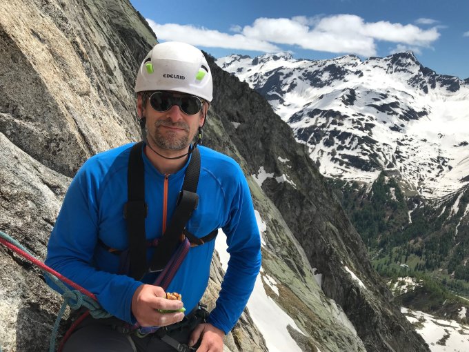 Freunde Agnes und Andreas klettern parallel die Piccadily di Bedretto. Sonst keine anderen Kletterer im Gebiet.