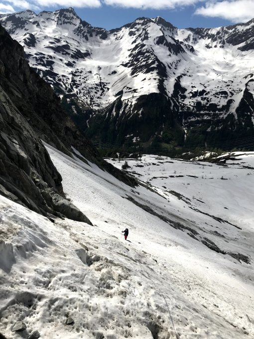 Linkerhand der Piccadily Route liegt im Mittelteil noch Schnee der abrutschen kann.