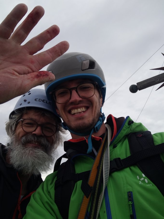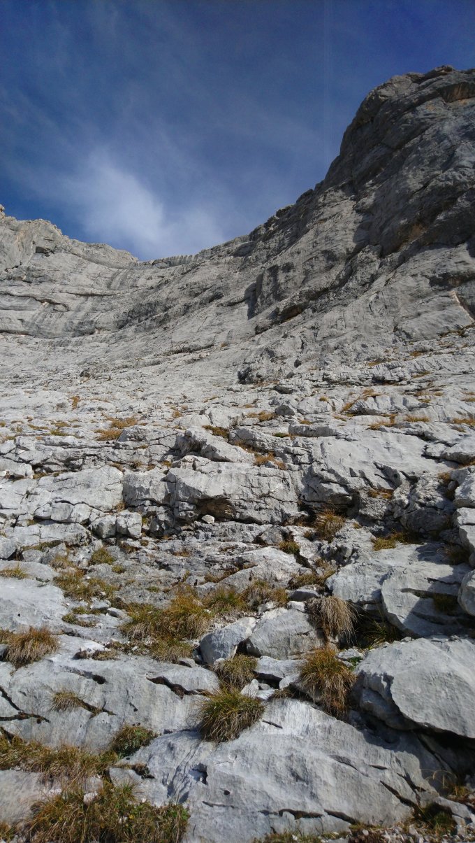 Trockener Fels, aber sehr windig/böig und kalt. Zu- und Abstieg ohne Probleme (Abseilen zwar möglich, war uns dann aber zu kalt). Deswegen Abstieg über das Grasband und den Guffert-Hauptgipfel. Sehr schöne, aber auch anspruchsvolle und lohnenswerte Plattenkletterei. Der Vorsteiger sollte auf jeden Fall wissen was er tut bzw. drauf hat. Die Hakenabstände teilweise sehr weit und es lässt sich nur bedingt was legen. Wir mussten uns erst mal wieder an plattiges Gelände gewöhnen und gleich in der ersten Seillänge hatte ich einen kurzen Schreckmoment, als ich einen guten Seitgriff abgeräumt habe. Die schweren Stellen waren gut abgesichert, aber durchaus anspruchsvoll.
