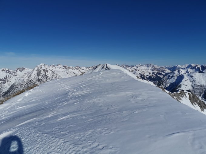 Über den Rücken zum Vorgipfel und zu Fuß zum Hauptgipfel.