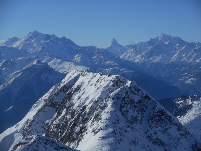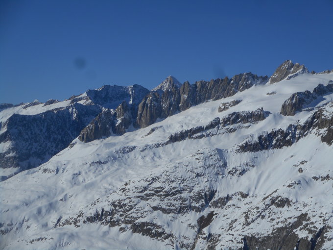 Vom Eggishorn aus sehen wir 65 Viertausender. Wir durften die Spur legen, und waren alleine auf dem Gipfel.