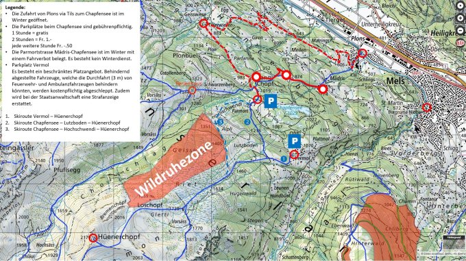 Aufgrund dieser Problematik hat die Gemeinde Mels veranlasst, dass die Tilserstrasse, Plons – Tils – Chapfensee, für den Verkehr geöffnet wird. Die Parkplätze im Bereich Chapfensee werden ebenfalls vom Schnee befreit, sodass dort genügend Parkiermöglichkeiten vorhanden sind.