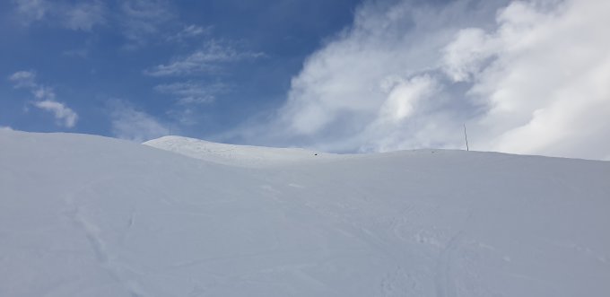 Bei der Abfahrt vom Rossgrat noch ca.20 cm. Pulverschnee, aber leider sehr diffuses Licht, ab Gander Fur wieder gute Sicht.