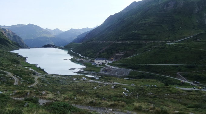 Ursprünglich plante ich den Aufstieg schon in Partenen zu beginnen über Europas längste gerade Treppe, die als ehem. Versorgungsstrecke gebaut wurde für den Bau des Vermunt-Stausees. 700 Hm mit bis zu 86% Neigung. Während das Empire State Building in New York auf 1578 Stufen kommt, befinden sich hier über 4000. Und anschließend durch den Wasser-Erlebnis-Stollen. Doch die Europa-Treppe 4000, Felstunnel wie auch die Vermuntbahn sind die nächsten 2 Jahre gesperrt für den öffentlichen Betrieb und werden für den Baustellenverkehr genutzt. Bis 2018 soll das Obervermuntwerk II mit einer Leistung von 360 MW errichtet werden. Nur im Winter, wenn die Baustellen ruhen, können die Skitourengeher die Vermuntbahn nutzen.