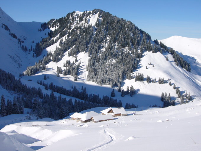 Durchgehend Schnee, beim Start in der Hengstkurve Regenkruste auf wenig Neuschnee, ab Grenchenberg Pulver, Hanentraverse knapp gedeckte Grasmutten.