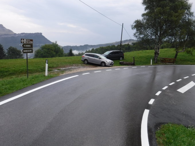 Da die Wetterentwicklung unsicher war, bin ich am Passo Pozza della Cola gestartet und den Steig in umgekehrter Richtung gelaufen, so daß ich kürzest mögliche Zustiegszeit hatte, nachdem der Regen aufgehört hatte. Ein langer Wanderrückweg wäre mir in Regenkleidung egal gewesen. Doch diese wurde gar nicht notwendig. Auf dem Karrenweg (Nr.652) traf ich am Brunnen ein Wanderpärchen, das überrascht war, bei diesem Wetter jemanden anzutreffen.