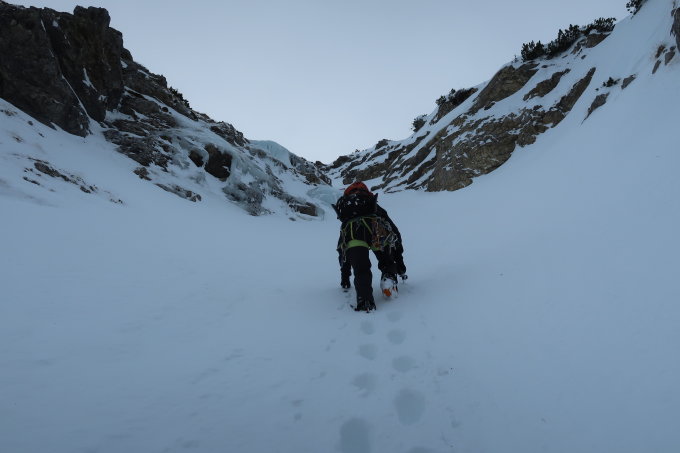 Stapfschnee im Couloir, keine Mixedpassagen, Eisqualität sehr gut