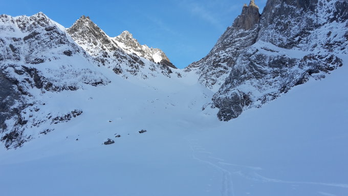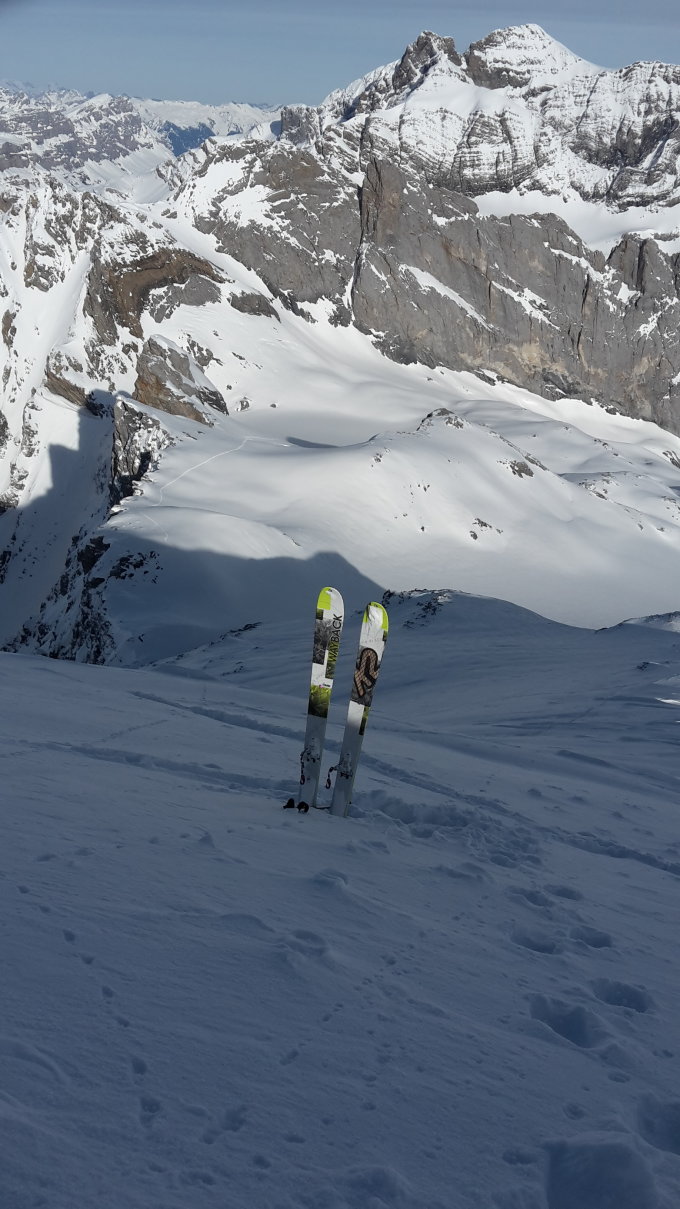 Ganz alleine unterwegs. Durfte ab der Alp Brunni alles bis zum Gipfel neu spuren. Stabile und massive Schneelage in der Ruchenchälen. Auf dem Firn sehr viel Neu- und Triebschnee. Abfahrt ein Traum!