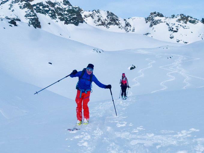 Perfekte Verhältnisse im ganzen Gebiet angetroffen. Pulverschnee von oben bis unten. Ab Guarda (ca. 70 cm Schnee) auf gut präpariertem Weg bis zur Tuoihütte. Ab da neu gespurt, bis Gipfel. Ueberall genug gesetzter Neuschnee, der sehr wenig abgeblasen ist (wenig Triebschnee)im Vergleich zu anderen Gebieten. Ganze Abfahrt Pulver. Im Bereich Hütte unterhalb 2400m dann etwas gedeckelt und hart.