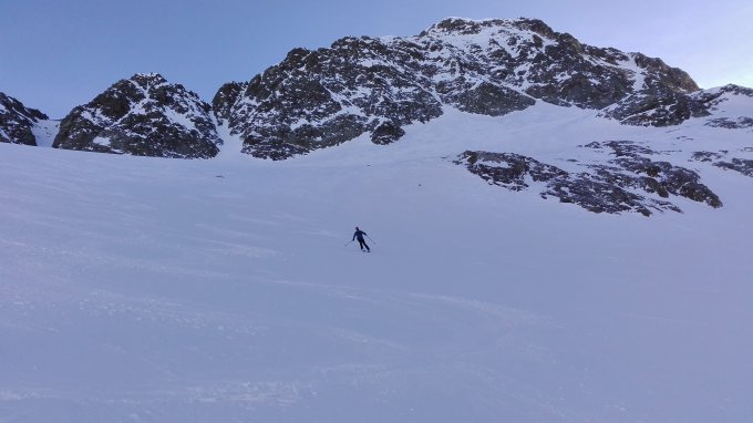 Gesamte Route gut eingeschneit und beste Verhältnisse. In der Abfahrt zur Chamanna Jenatsch sogar noch ein wenig Pulver gefunden.
