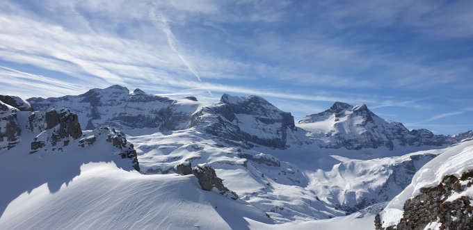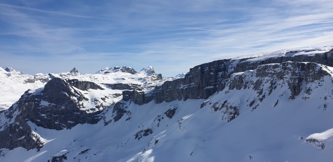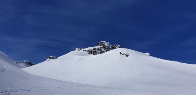 Sehr gute Verhätnisse heute im Aufstieg zum Raustöckli, am Gipfel Windstill, bei der Abfahrt am 10.15 Uhr oben immer noch Pulverschnee, dann Firnschnee beim Oberstafel, im Gebiet Ruosalp sogar noch Sulzschnee.