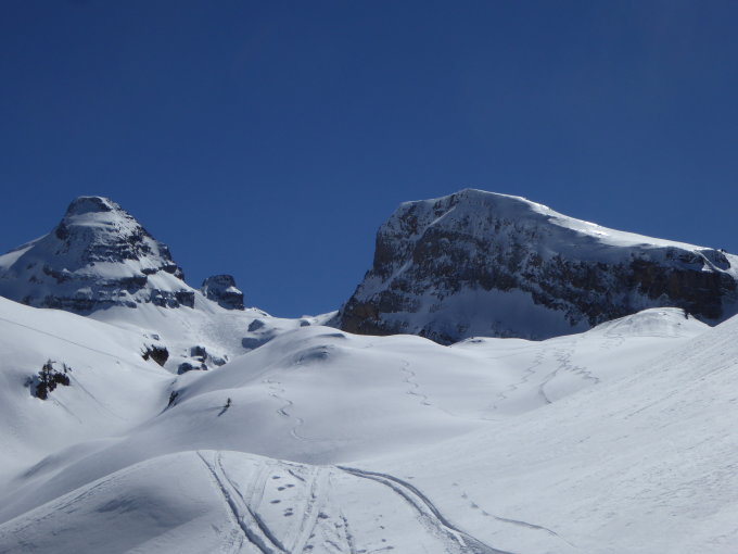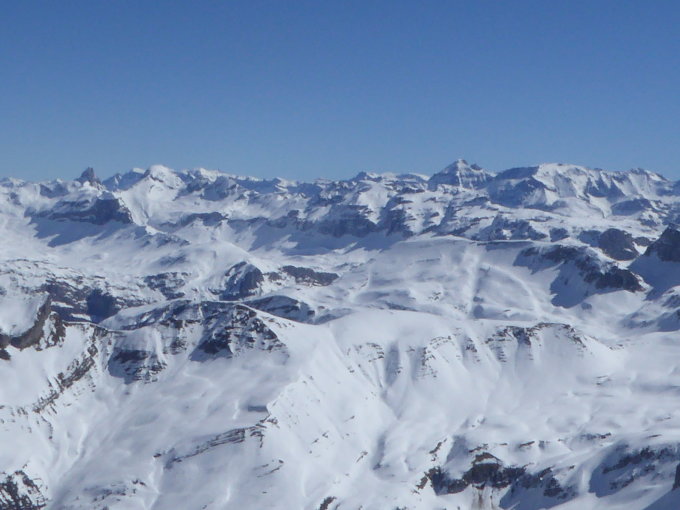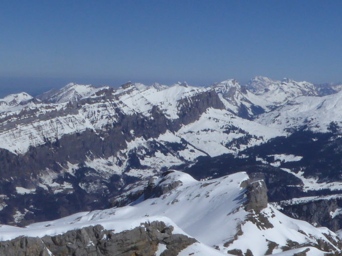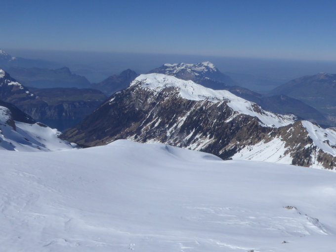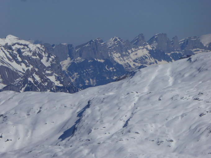strahlend blauer Himmel, keine Wolken, windstill, auf dem Gipfel eine leichte Brise. Sehr milde Verhältnisse. Gute Spur ab Lidernenhütte vorhanden, auch an der Querung unterhalb des Chaiserstocks. Im oberen Teil Spur steil und leicht eisig, geht aber ohne Harscheisen. Gute Trittspur in der Rinne. Steigeisen können von Vorteil sein, jedoch zur Zeit nicht zwingend. Pickel hilft im Auf- und Abstieg.