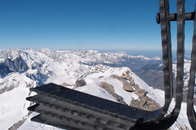 Abfahrt am Gletscher in die Mulde noch meist pulvrig. Hüfi und Claridenfirn dick eingeschneit.
