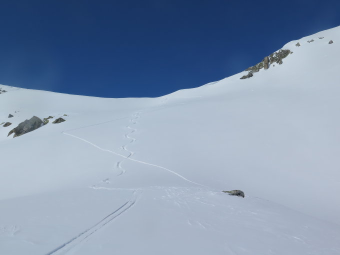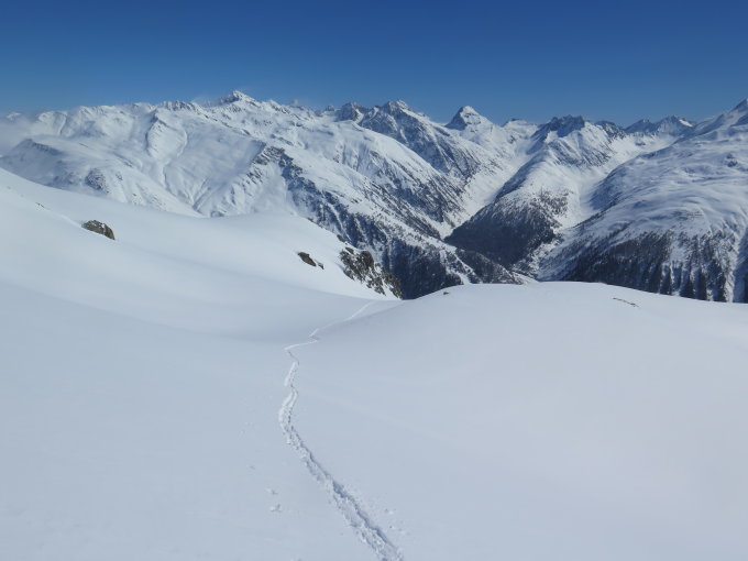 Abfahrt in mehr oder weniger gepresstem Pulver. Ab Jostsee durch zastrugis zu Pkt. 2576.