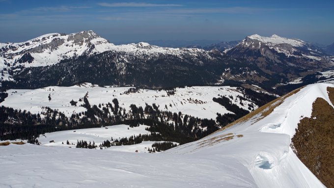 Bei der Abfahrt noch recht hart aber an den letzten Hangen zum Lombachalp gab es fantstischer Sulzschnee.