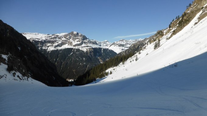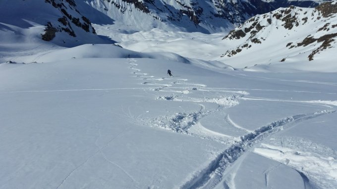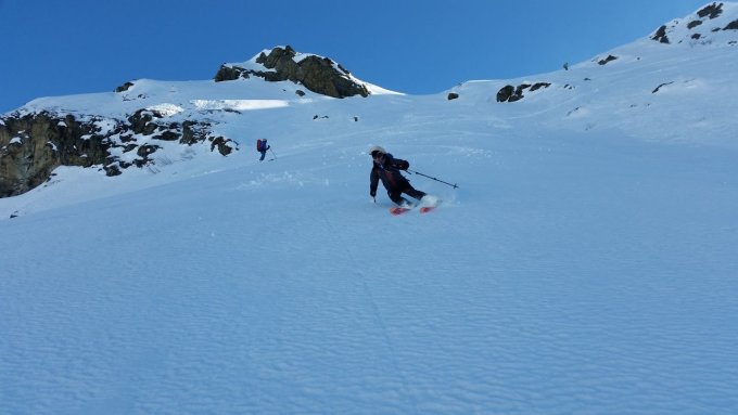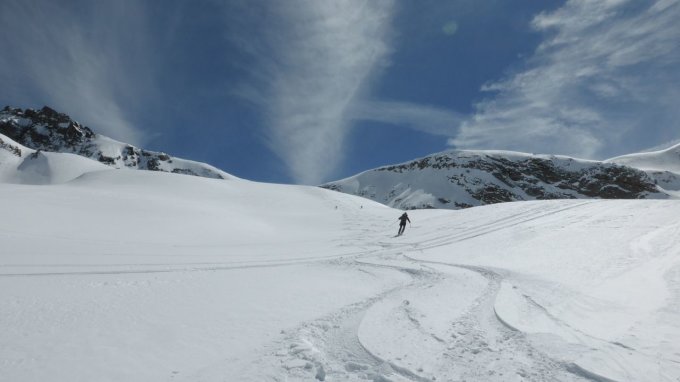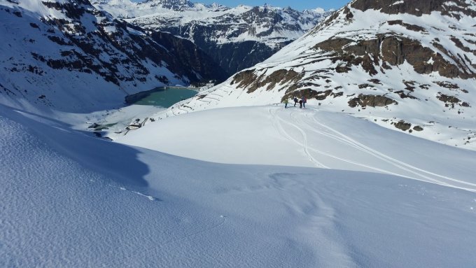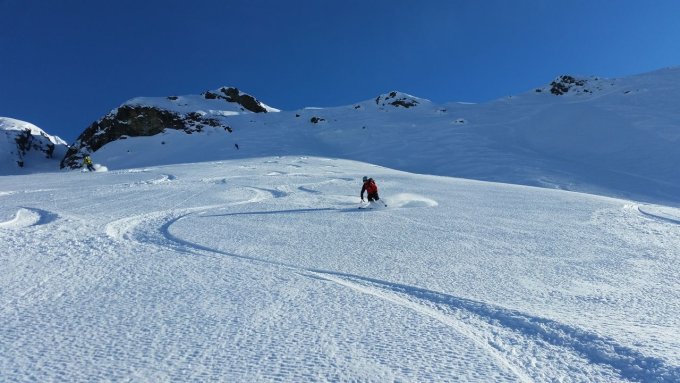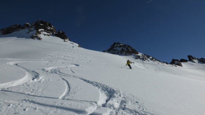 Es herrschen Traumverhältnisse. Am Morgen war es noch recht kalt, aber wir konnte uns bald in der wärmenden Sonne bewegen. Die steilen Flanken war gut gespurt und hart. Am Vorgipfel des Silvrettahorns gab es einen Unfall (der zum Glück relativ glimpflich verlief) und wir wichen daher über die steile Westflanke zum Gipfel aus. Bei der Abfahrt von der Schneeglocke war der Schnee im oberen Teil windgepresst Erst weiter unten gab es schöne Hänge mit Pulverschnee. Mit dem Zusatzaufstieg auf den Verhupfgletscher wurden wir nochmals mit herrlicher Abfahrt belohnt und wir konnten von da ohne Anstieg die Tschifernella anhängen. Auch die Abfahrt nach Partenen ging gut zu fahren.