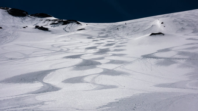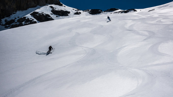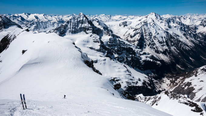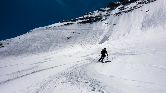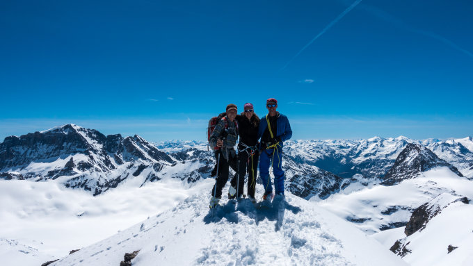 Traumtag, wolkenlos, sehr gute Fernsicht, warm. Start kurz nach 5 Uhr beim Hotel Klausen-Passhöhe bei + 7°, Schneedecke nur schwach gefroren. Kurze Abfahrt beim Hotel und Aufstieg bis zur Aufstiegsspur, die von der Passhöhe herkommt. Ab Punkt 2528 beginnt der sehr steile Aufstieg zur Chammlilücke. Heute hatte man die Wahl: entweder den Felsen des Chammlibergs entlang über viel Lawinenschnee. Diesen Aufstieg haben heute fast alle gewählt, sah aber sehr mühsam aus. Wir sind mit mehreren sehr steilen Spitzkehren etwas weiter westlich über den Grissfirn aufgestiegen und haben so die Chammlilücke erreicht. Mit Harscheisen heute dank weichem Schnee gut zu meistern. Gipfelbesteigung ab Skidepot heute bei gutem Trittschnee problemlos. Abfahrt vom Gipfel um 12 Uhr, die oberen 2 Drittel meist herrlicher Sulz (die Hänge der Chämmlilücke sind am Morgen noch lange im Schatten). Im unteren Drittel schwerer Bremsschnee.