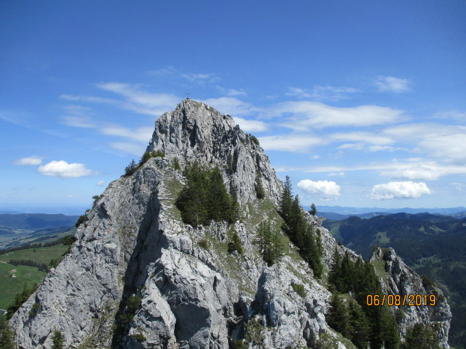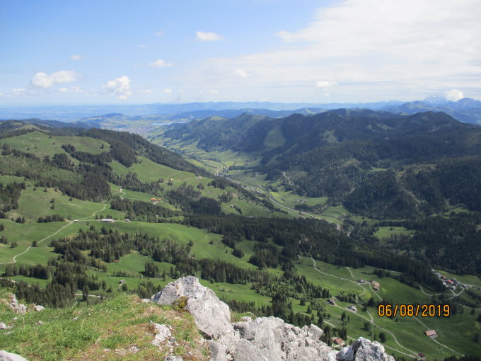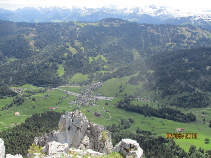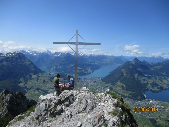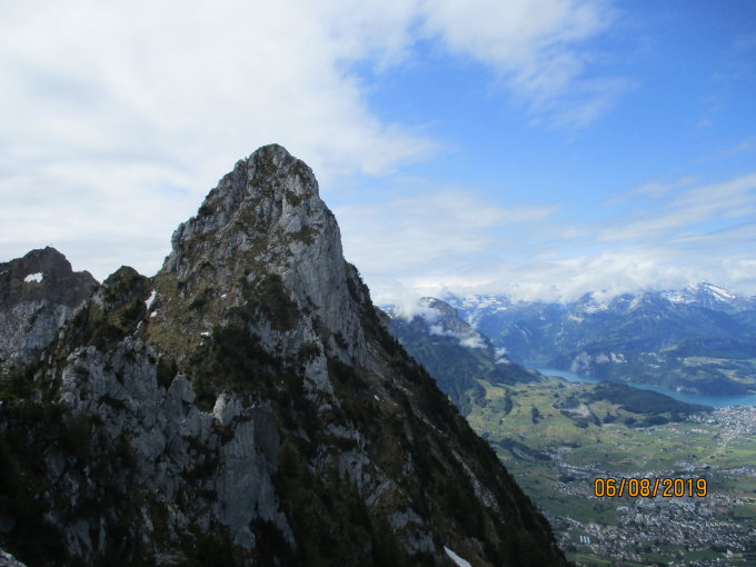 Ein wenig feuchtes Erdreich aus offensichtlich nicht allzu ergiebigen Niederschlägen der Vornacht störte nicht, die Felsen zeigten sich abgetrocknet. Mit Restbewölkung angenehmes Klima, am Haggenspitz nur eine Partie weit hinter uns. Etwas mehr Verkehrsaufkommen dann am Chli Mythen, immerhin drei weitere Personen zeitgleich mit uns am Gipfel. Ab Zwüschet Mythen dann der zu erwartende Rummel. Wir machten unseren Abstieg über die Holzegg, da wir in Brunni das Auto geparkt hatten. Am Haggensppitz Variante durchs Müllerkamin. Wir entschieden uns hierfür fürs Anseilen, ansonsten wurde seilfrei geklettert.