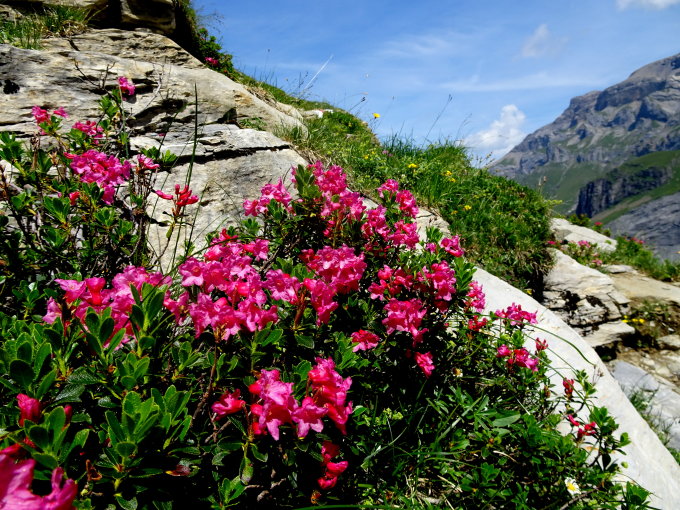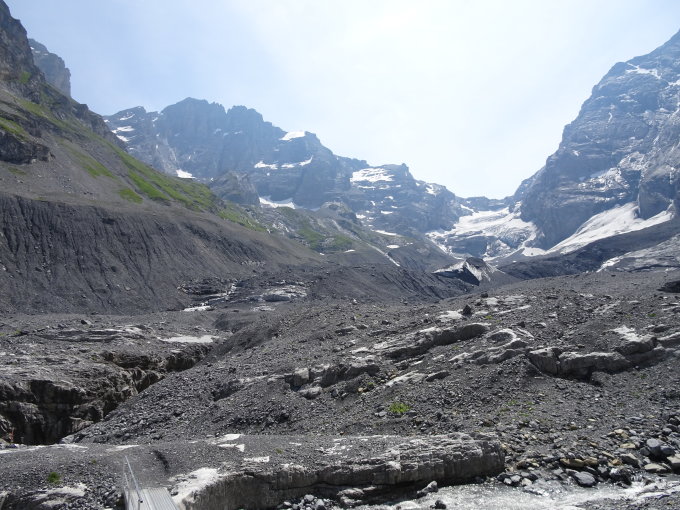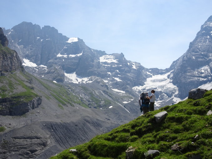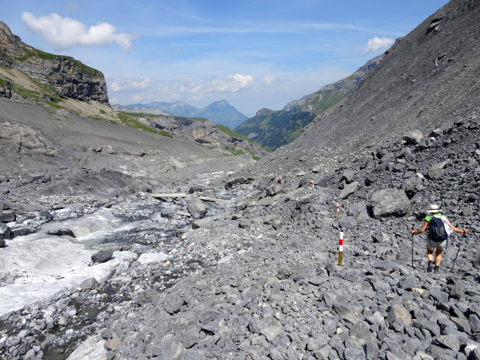 Heute haben wir, durch die grosse Hitze zur Vernunft gezwungen, die kürzere Variante gewählt, das heisst: Hüttenverzicht, bei der Moräne direkt zum Gletscher hinunter und beim Oberloch, den Abstieg nach Gamchi und weiter zum Bundsteg-Griesalp gemacht was uns am Schluss sehr vernünftig vorkam.