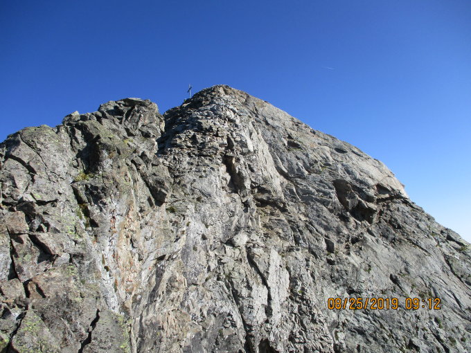 Samstag Abend ging noch ein kurzer, nicht allzu ergiebiger Schauer nieder - selbstverständlich gerade dann, als wir am Kochen waren ;-). Etwa 6.15 in der Früh zogen wir dann zu Berg. Im Zustieg war das Blockwerk aufgrund der Nässe vom Vortag teils mit Vorsicht zu genießen. Glücklicherweise zeigten sie sich aber nicht überfroren. Der Firn des Tschingelfirns war fürhmorgens allerdings noch hart. Da wir keine Steigeisen dabei hatten, umgingen wir diesen obenherum, was recht unkompliziwert vonstatten ging. An der schmnalsten Stelle unterhalb des Einstiegs zum Südgrat hackten wir Spuren mit Hilfe des Pickels. Der Südgrat zeigte sich wunderbar trocken. Auf dem Rückweg war der Firn auch genügend angetaut, um problemlos ohne Eisen begangen zu werden.