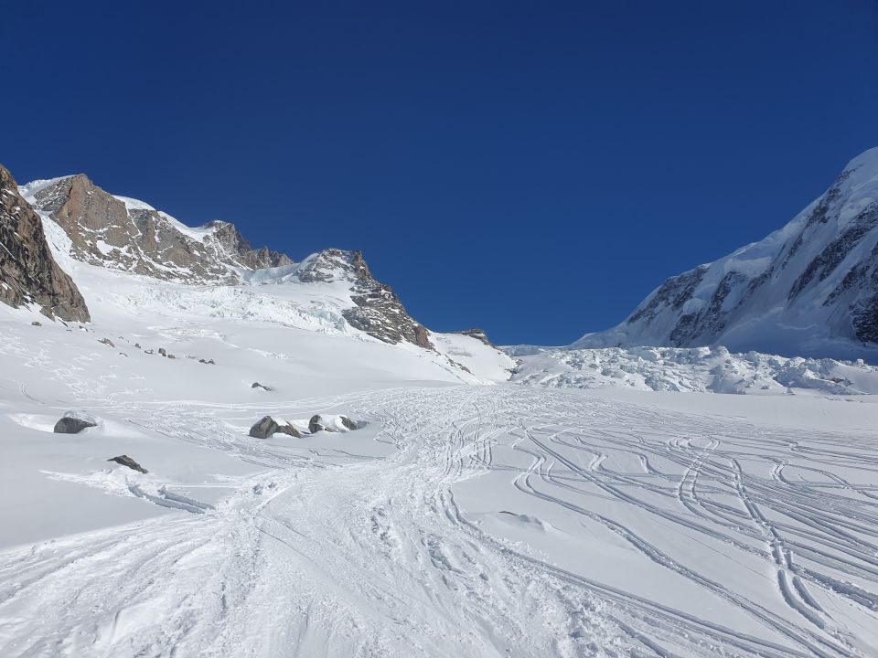 Normalerweise kreist über meinem Kopf oft ein Bartgeier. Heute waren es jedoch permanent viele Helikopter. Ich denke da wohl weniger für Rettungseinsätze, sondern mehr für Heliskiing, Rundflüge oder Transporte...