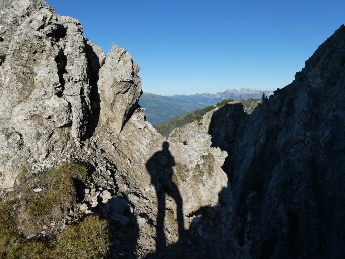 Der Weg zum Sassförkle war noch im Schatten, als ich am Gipfel war. Ich beschloss darum, heute auf der sonnigen Aufstiegsroute wieder abzusteigen.