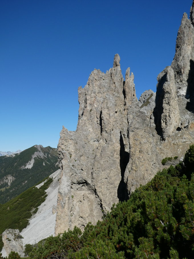 Auf der Route über den Gamsgrat traf ich heute 7 Leute, darunter eine Familie, vorbildlich ausgerüstet und ihre Kinder angeseilt.