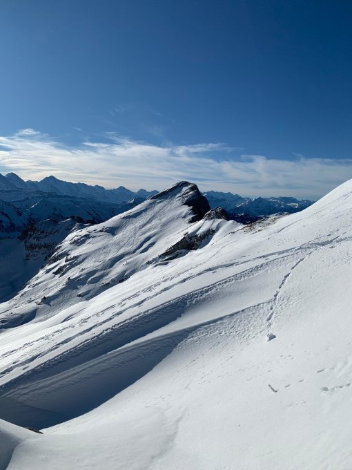 Gipfelhang nur leicht gedeckelt, z.T. Pulver. Kurzer Aufstieg aus Senke zw. Gütsch und Türstehäuptli zum Türstehäuptli sehr lohnenswert. Abfahrt um 11 Uhr Sulz oder Pulver, je nach Exposition und Höhe.