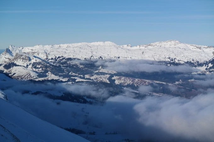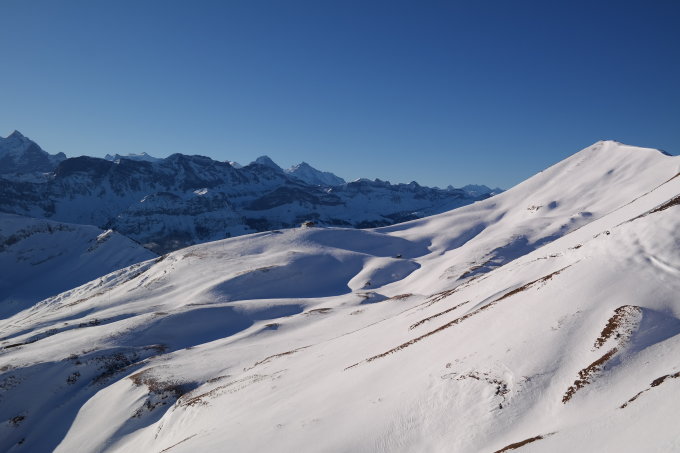 Auto ca. 400m nach Hinter Brosmatt parkiert. Ab da durchgehende kompakte Schneedecke. Für den Aufstieg sind keine Harscheisen nötig. Eine eigentliche Aufstiegsspur ist nicht mehr vorhanden. Durch die kompakte Schneedecke kann überall ohne Einsinken aufgestiegen werden. Gipfelbereich stark abgeblasen. Am Morgen reichte der Nebel bis auf eine Höhe von 1700m. Bei der Abfahrt Absenkung auf 1500m oder teilweise Auflösung. Oberhalb Nebelgrenze strahlender Sonnenschein vom wolkenlosem Himmel. Die Abfahrt kann bei den derzeitigen Verhältnissen mit eher wenig Schnee problemlos ohne Stein-/Graskontakt gemacht werden. Sobald es wieder Neuschnee gibt sind allenfalls die abgeblasenen Stellen und Steine nicht mehr alle sichtbar und es muss wieder mit Feindkontakt gerechnet werden. Wenige Meter oberhalb und unterhalb der Fluonalp konnten ungefähr je 12 aneinandergereihte Schwünge im unverspurten Pulverschnee gemacht werden! Ansonsten rattert es bei der Abfahrt mehr als es Spass macht. Durch das tolle Wetter und den eher wenigen Personen im Gebiet war es trotzdem eine tolle Tour!