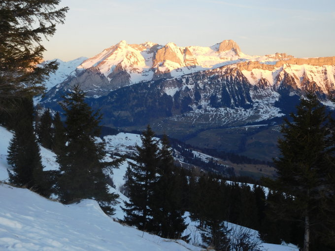 Um 7.40 Uhr am Berghaus Malbun über Obersäss - Hanenspil auf N-Route zum Gr. Fulfirst - Chli Fulfirst über Scharte nach ca. 20hm schneefrei. Bei Abfahrt Abstecher zum Glannachopf.