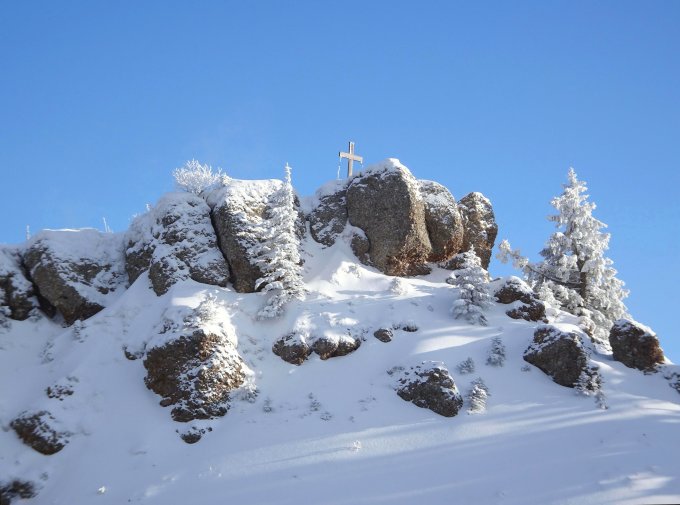 Wetter sehr wechselhaft. Nach sonnigem Start bald wolkig, am Gipfel wenig Fernsicht und im Gegenanstieg zum Heidenkopf Schneefall. Oben wieder Auflockerungen und beim letzten Aufstieg recht sonnig mit schönen Wolkenstimmungen.