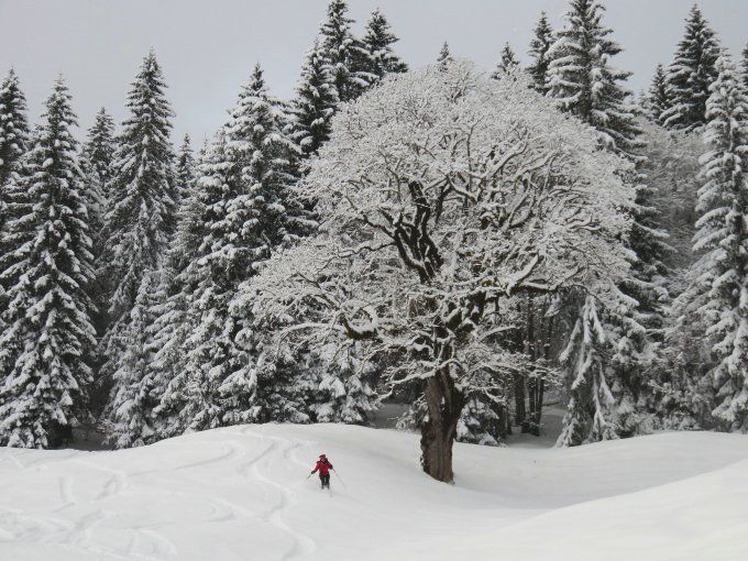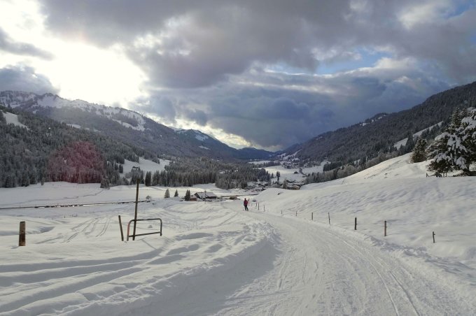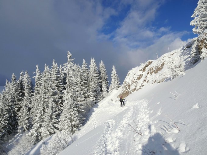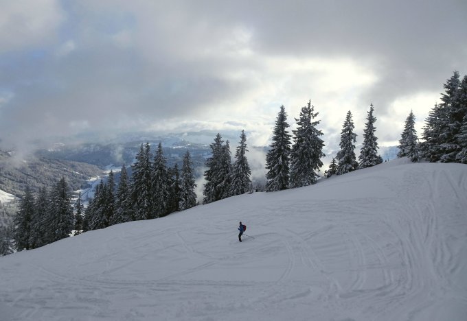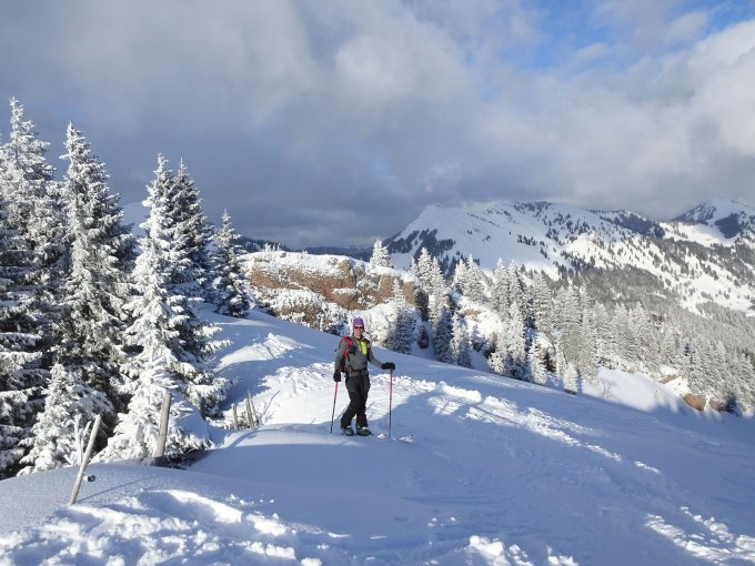 Mit dem Neuschnee beste Abfahrtsverhältnisse. 20-30 cm lockerer Pulver ohne Windeinfluss auf fester Grundlage, die beiden Nordabfahrten waren zudem noch kaum verspurt. Südseitig nach Balderschwang schon etwas zerpflügt, aber auch gut fahrbar. Etwas aufpassen auf Steine muss man trotzdem noch.