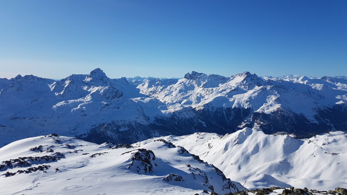 Am Piz Campagung sind schöne Pulververhältnisse, aber es hat schon heute einige Spuren gegeben