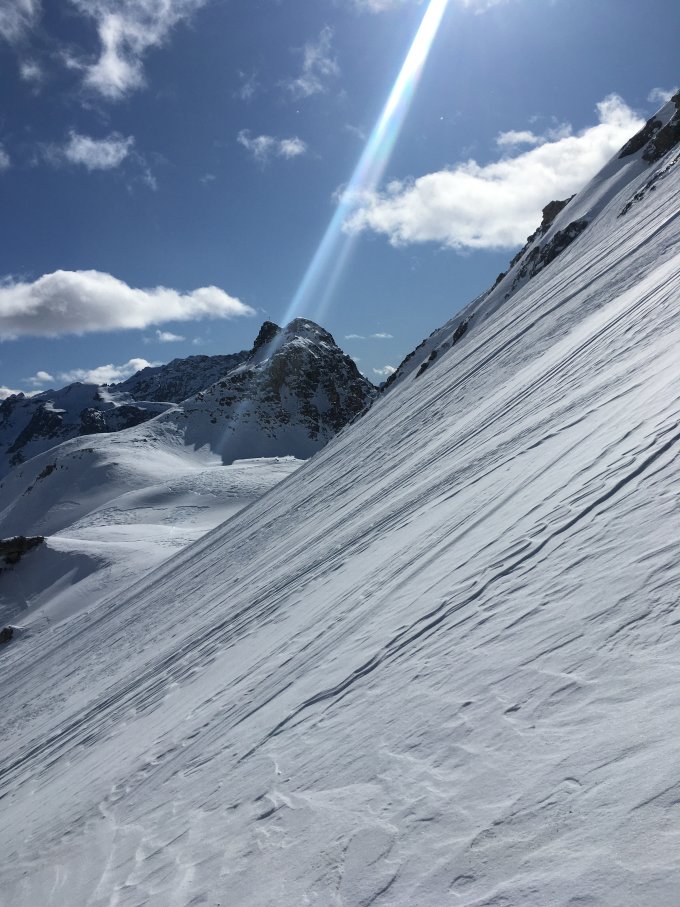 Endlich ist Sabine abgereist, heute tolles Wetter, Wetterbericht war einiges schlechter. Mit etwas Fantasie findet man schöne Abfahrtsvariante, empfehlenswert.