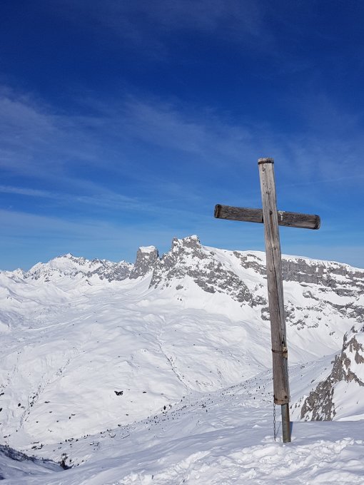 Zuerst Aufstieg auf Rotspitz, steife, kalte Bise - aber grandiose Sicht. Dann Abfahrt