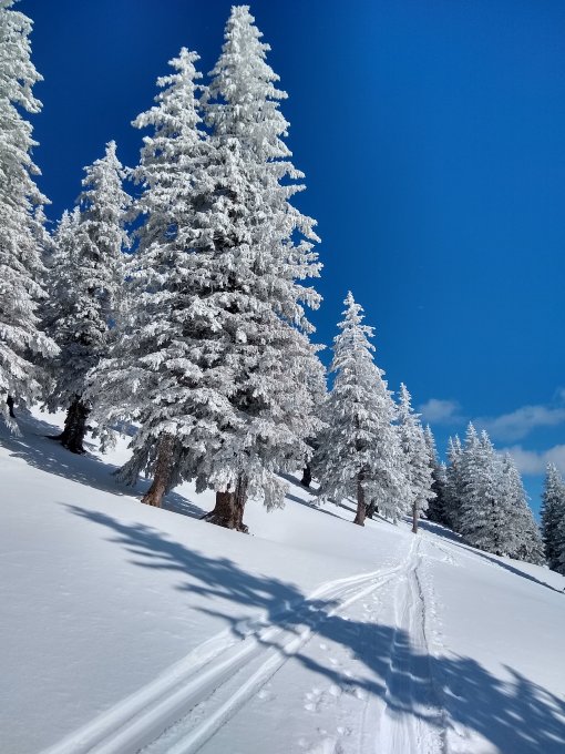 Bei leichtem Schneefall zuerst auf den Heidenkopf. Abfahrt bis zum "Abzweig"zum Sipplingerkopf. Schön zu fahren, allerdings Augen auf, z.Z. liegt an manchen Stellen nur der Neuschnee. Aufstieg zum Sipplinger, Abfahrt über den Nordhang bis zur Sipplingeralpe. Super Verhältnisse, auch hier auf die Schneelage achten. Aufstieg Heidenkopf, Abfahrt nach Balderschwang. Ganz unten entsteht durch die Sonne schon ein Deckel und es soweit schon wieder aus.