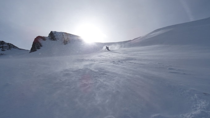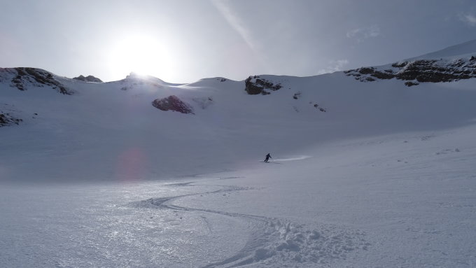 Darüber noch Pulverschnee der aber vom Wind bearbeitet wurde